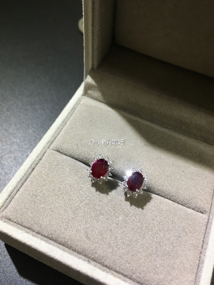 天然莫桑比克红宝石,钻石戴妃款耳钉