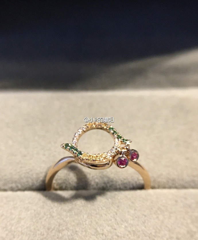 三用款小圆祖母绿戒指。用了好几种宝石,颜色丰富啊