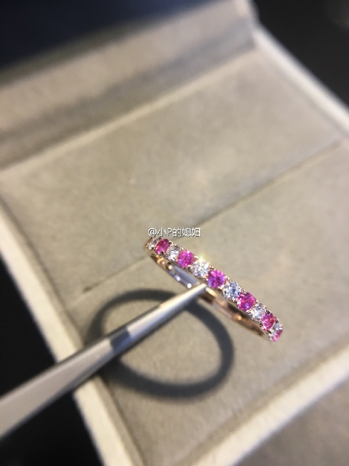 18K玫瑰金,3份一粒,钻石间红宝石排戒