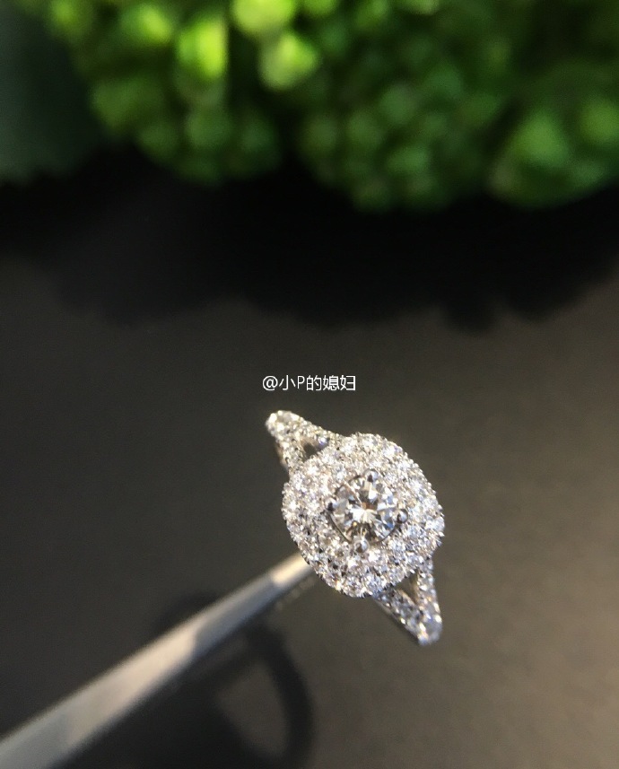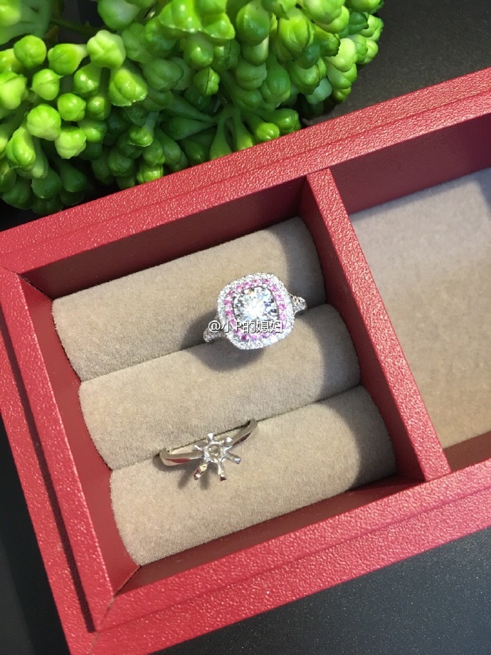 主钻18份,10号圈。豪华双层方型围钻燕尾镶。