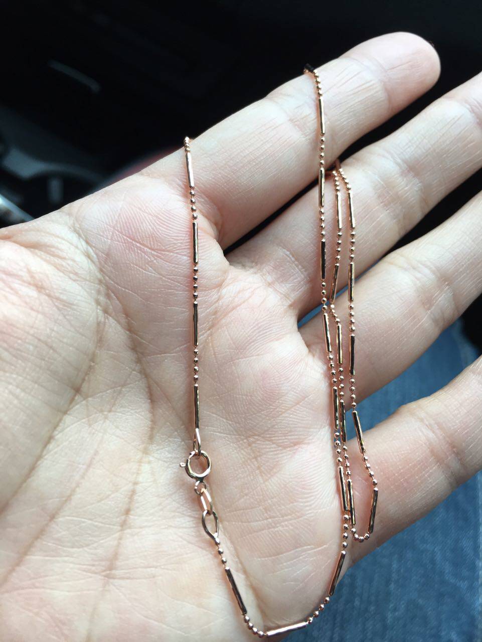 XY珠宝!18K玫瑰金珠珠节链项链