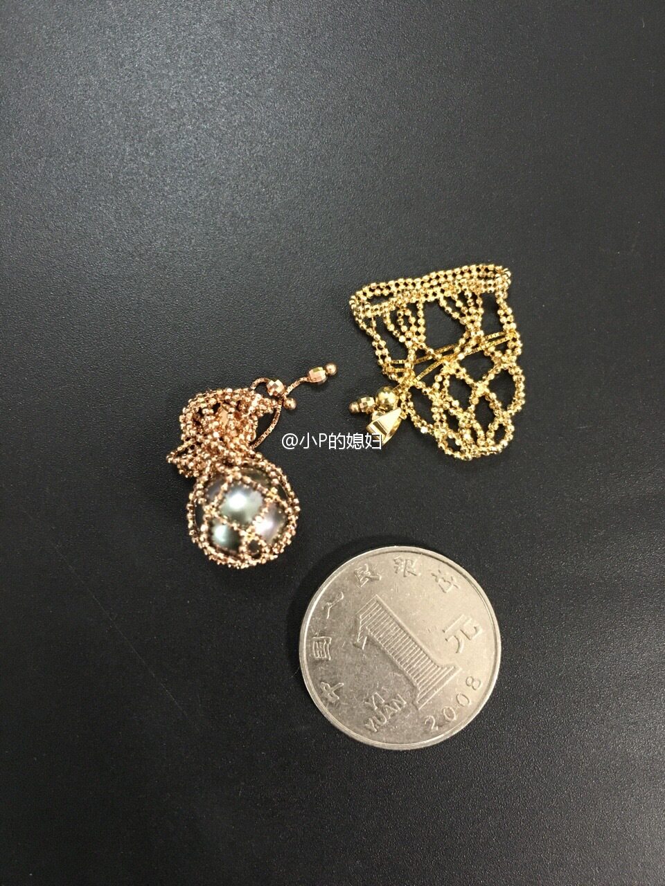 XY珠宝!天然大溪地黑珍珠10mm+18K金软链百宝袋吊坠