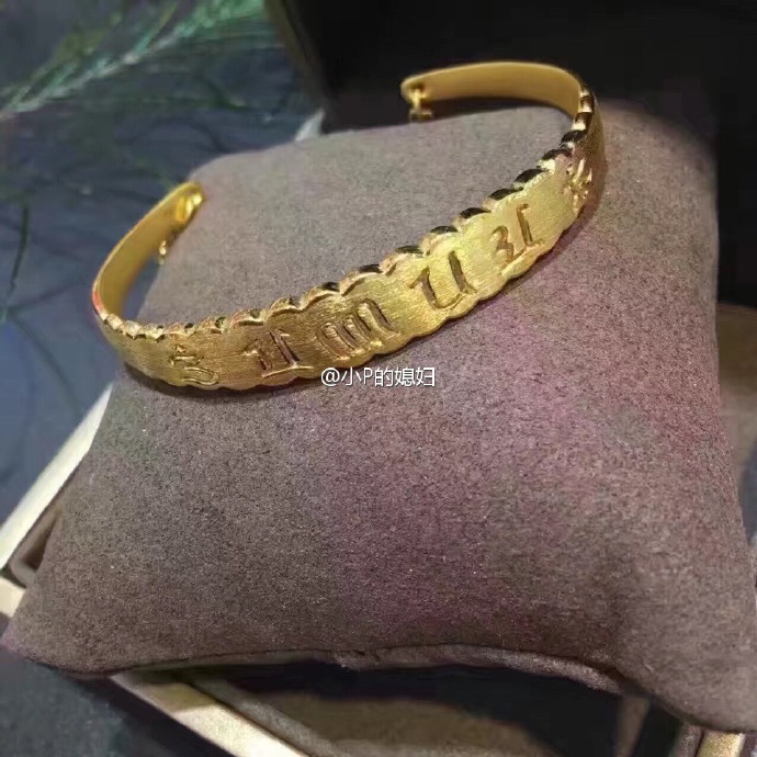 999黄金3D硬金工艺,六字大明咒开口带尾链手镯