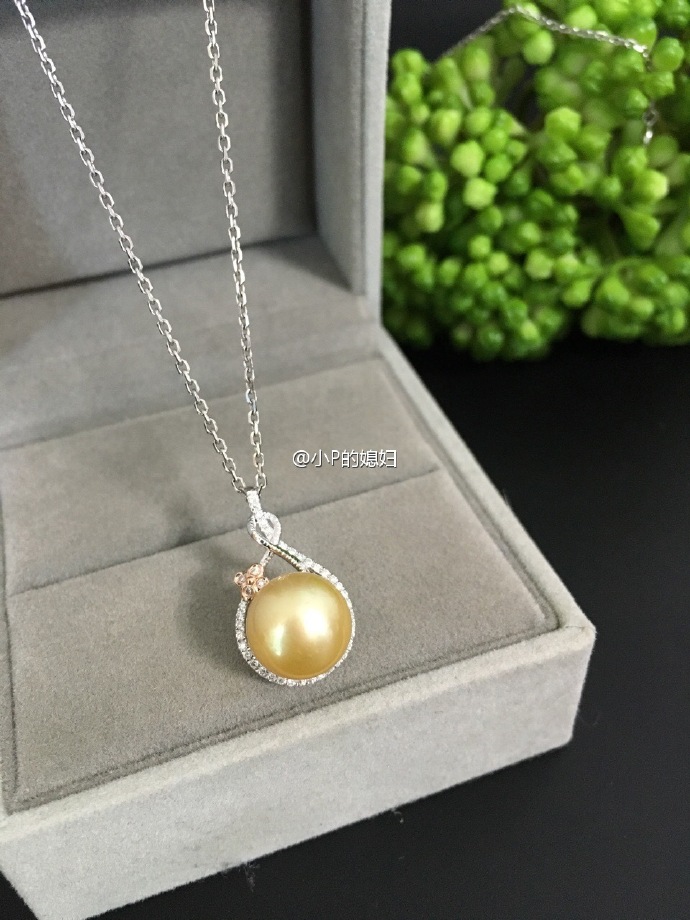 !南洋金珍珠微瑕10-11MM,围钻双色吊坠。