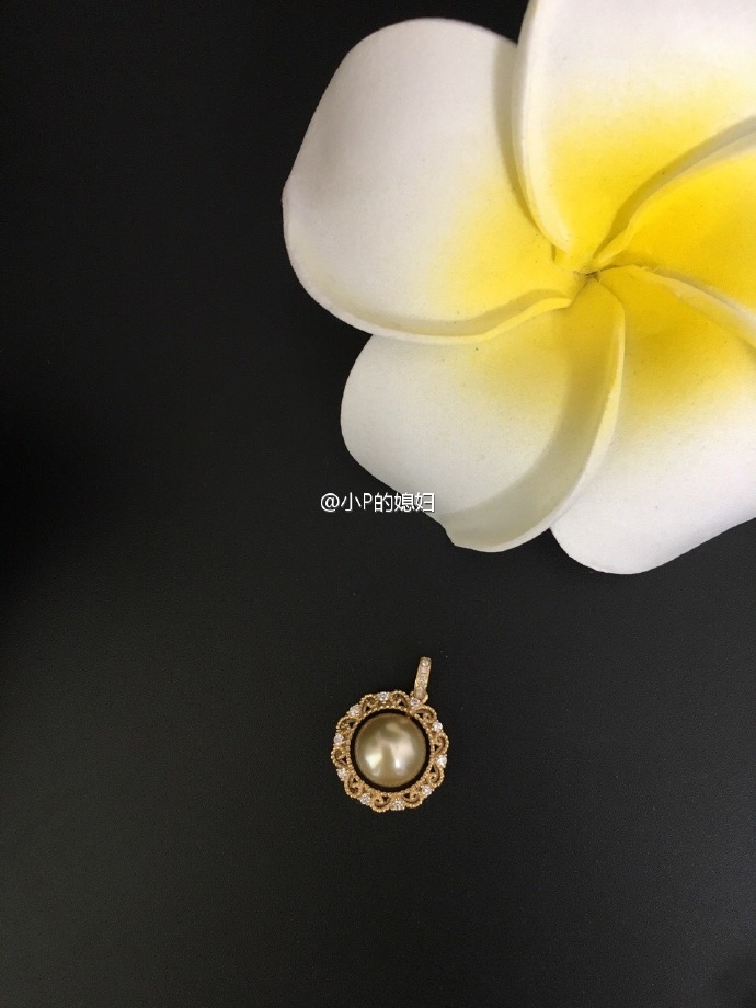 天然南洋金珍珠花丝盘钻石吊坠