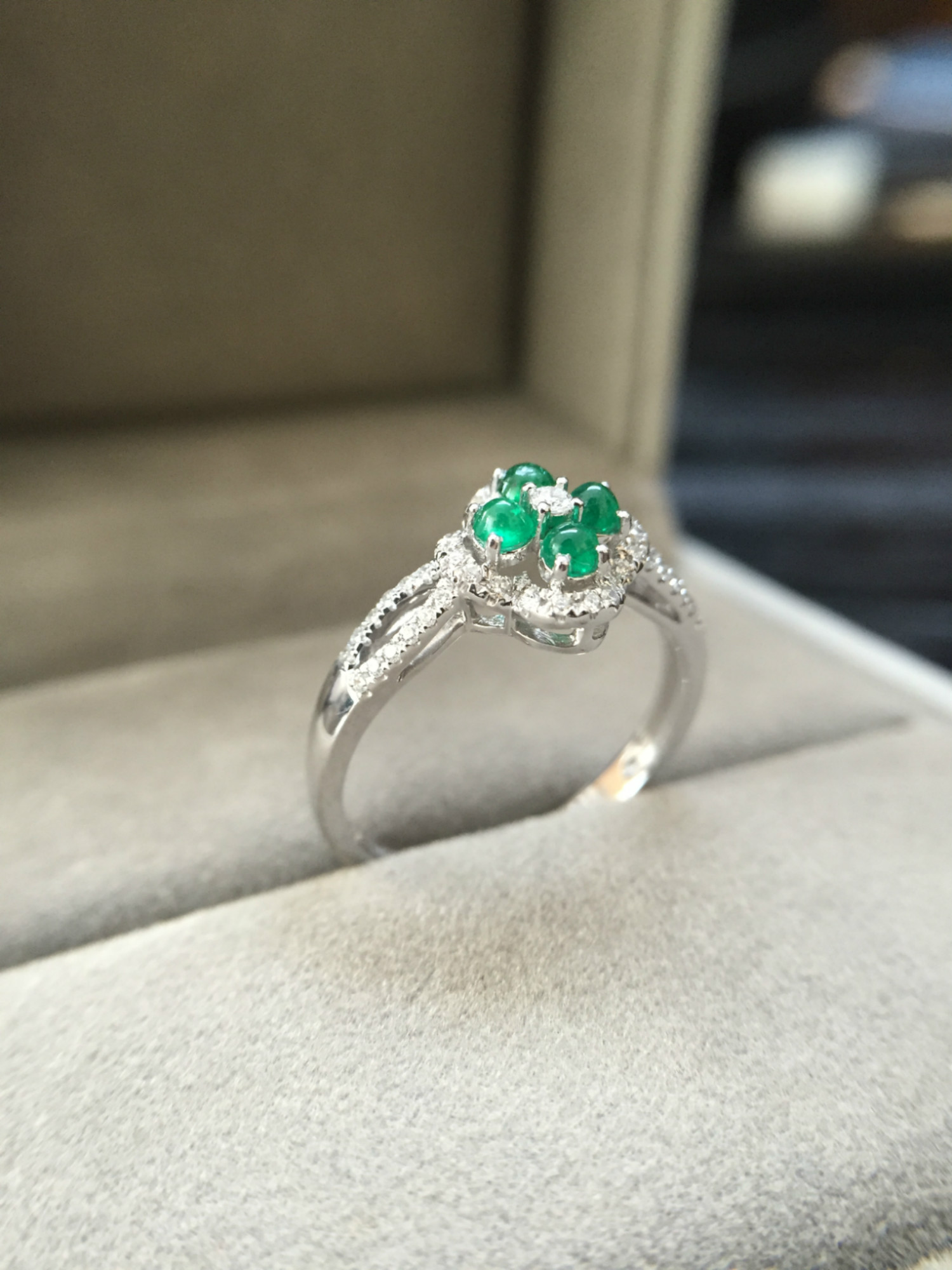 祖母绿素面钻石沙弗莱,猫头鹰耳勾