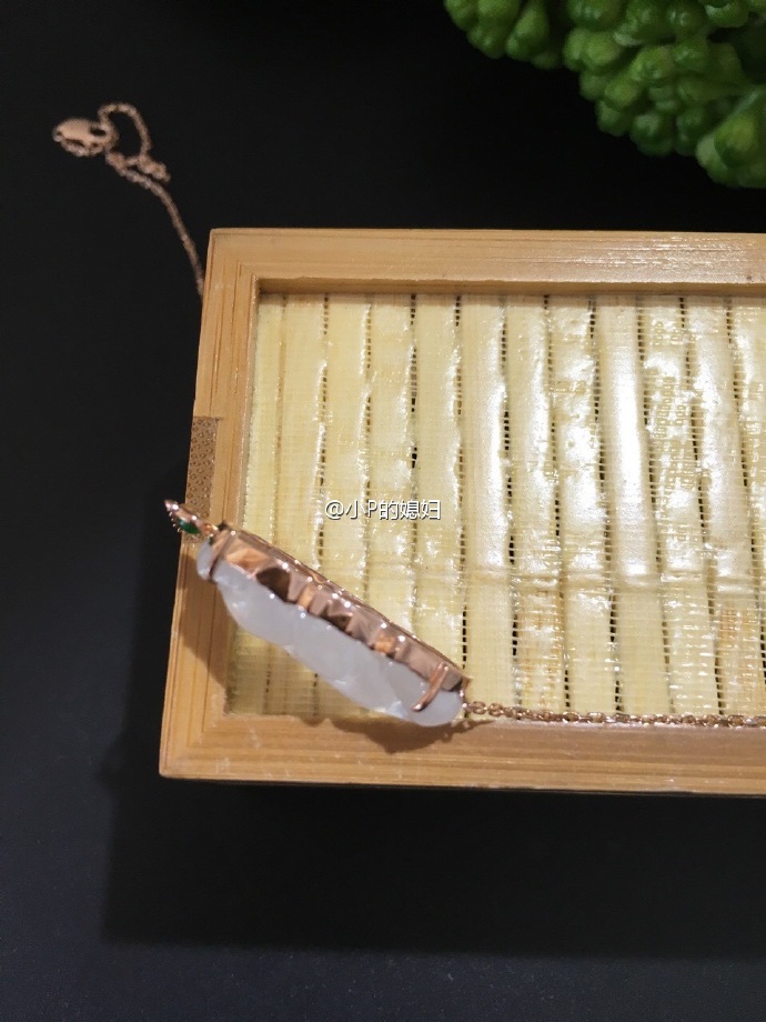 白冰鱼一体链[耶][耶]玫瑰金配白冰种很好看呢,小绿蛋是点睛之笔
