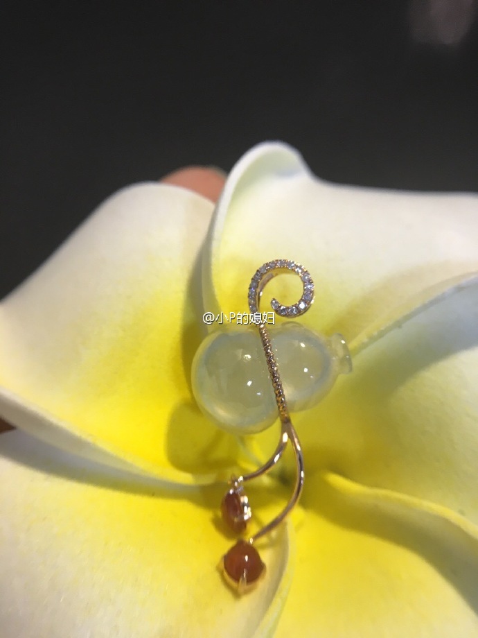 翡翠冰种葫芦和红翡蛋钻石吊坠