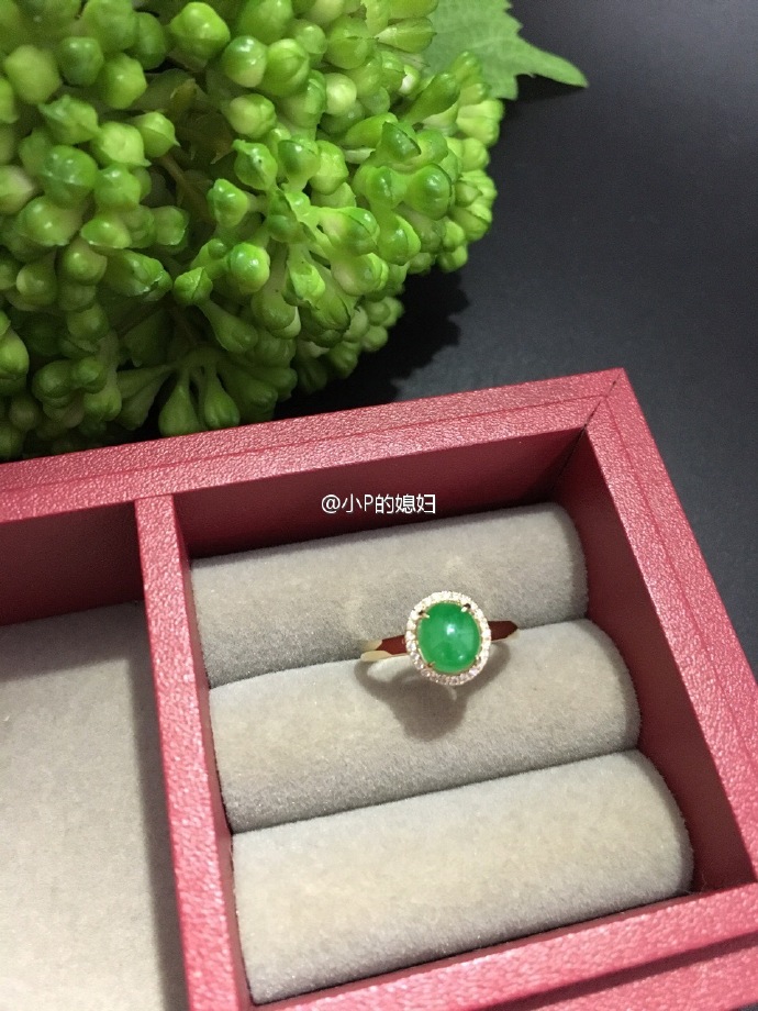 翡翠绿蛋编号111601,围钻直戒臂款戒指