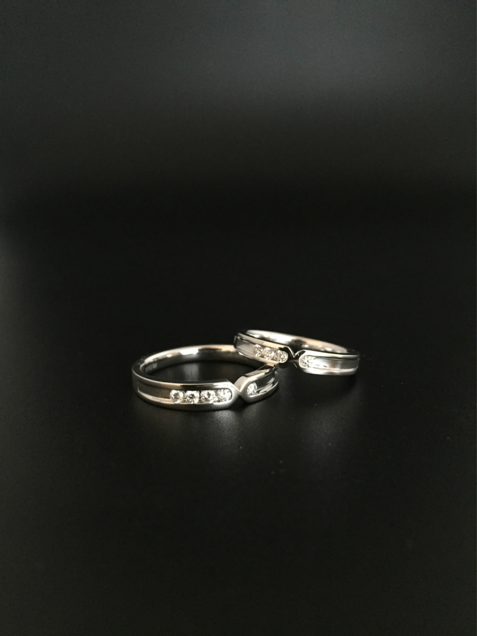女戒圈号较小用的2份一粒的钻共4粒,左1右3寓意一生。