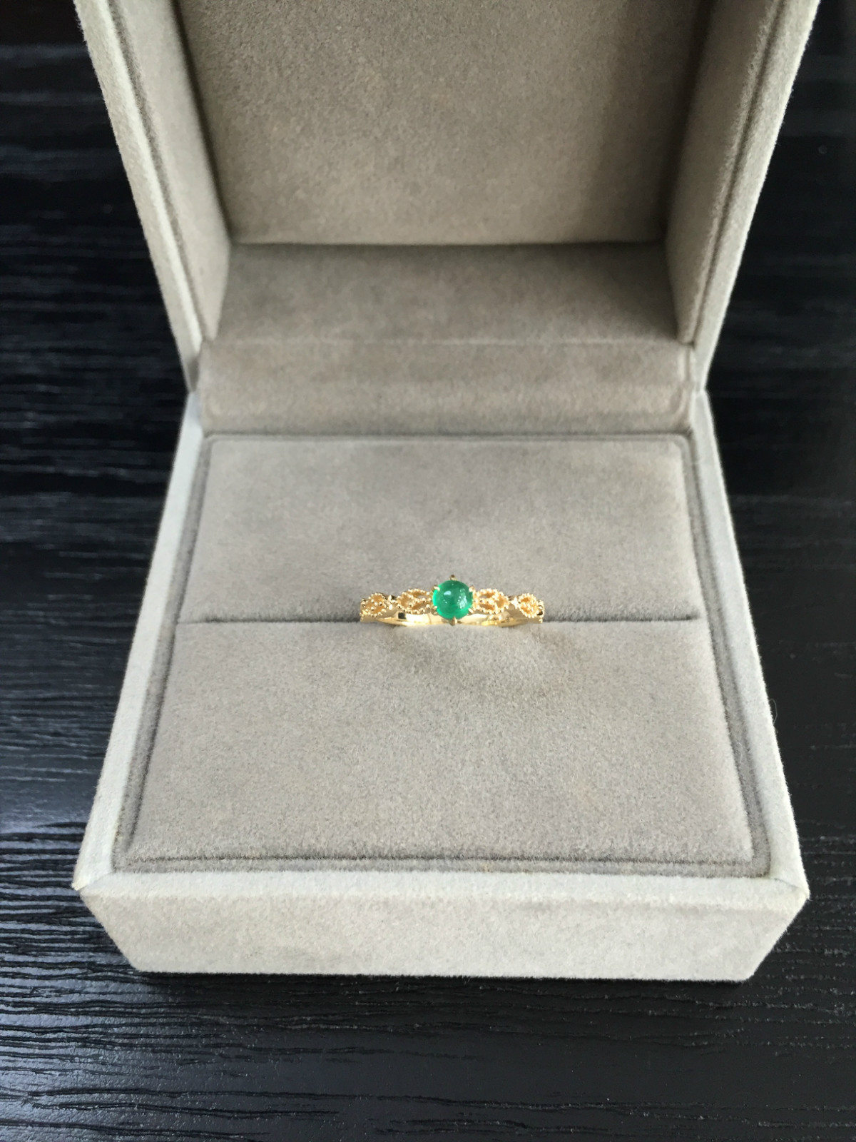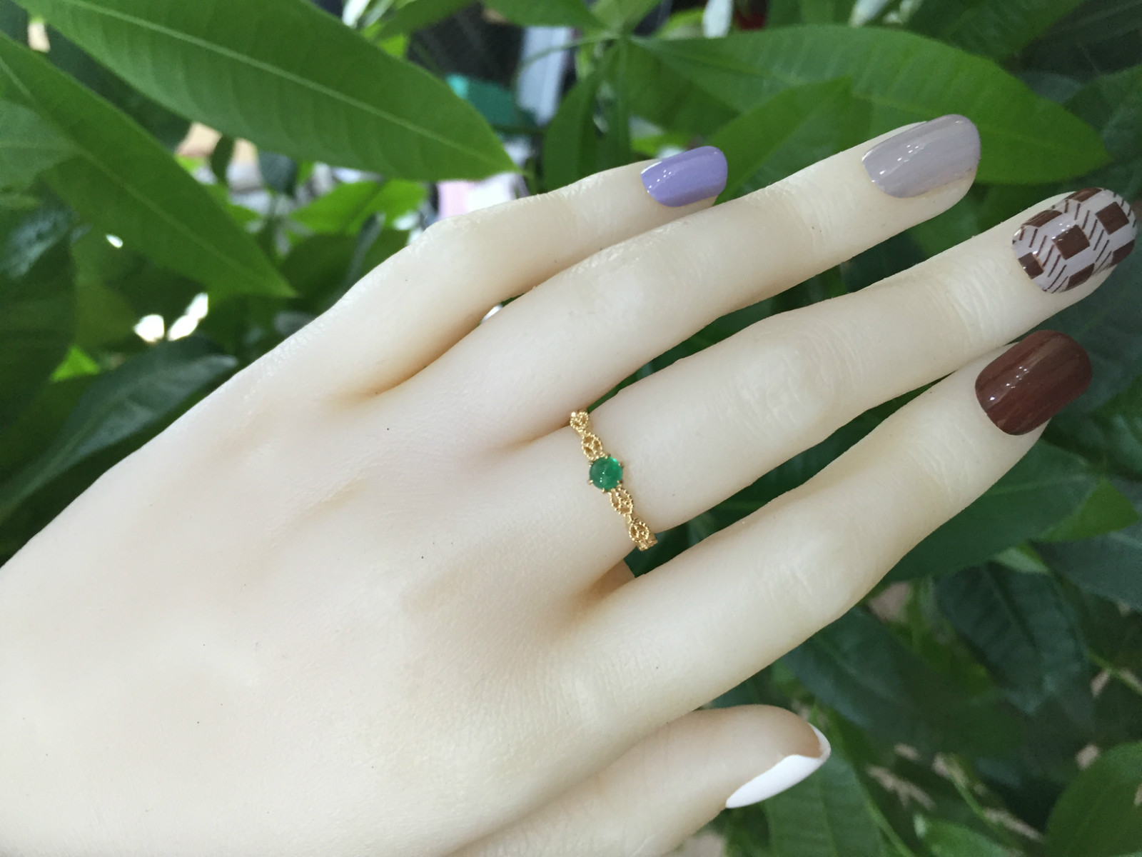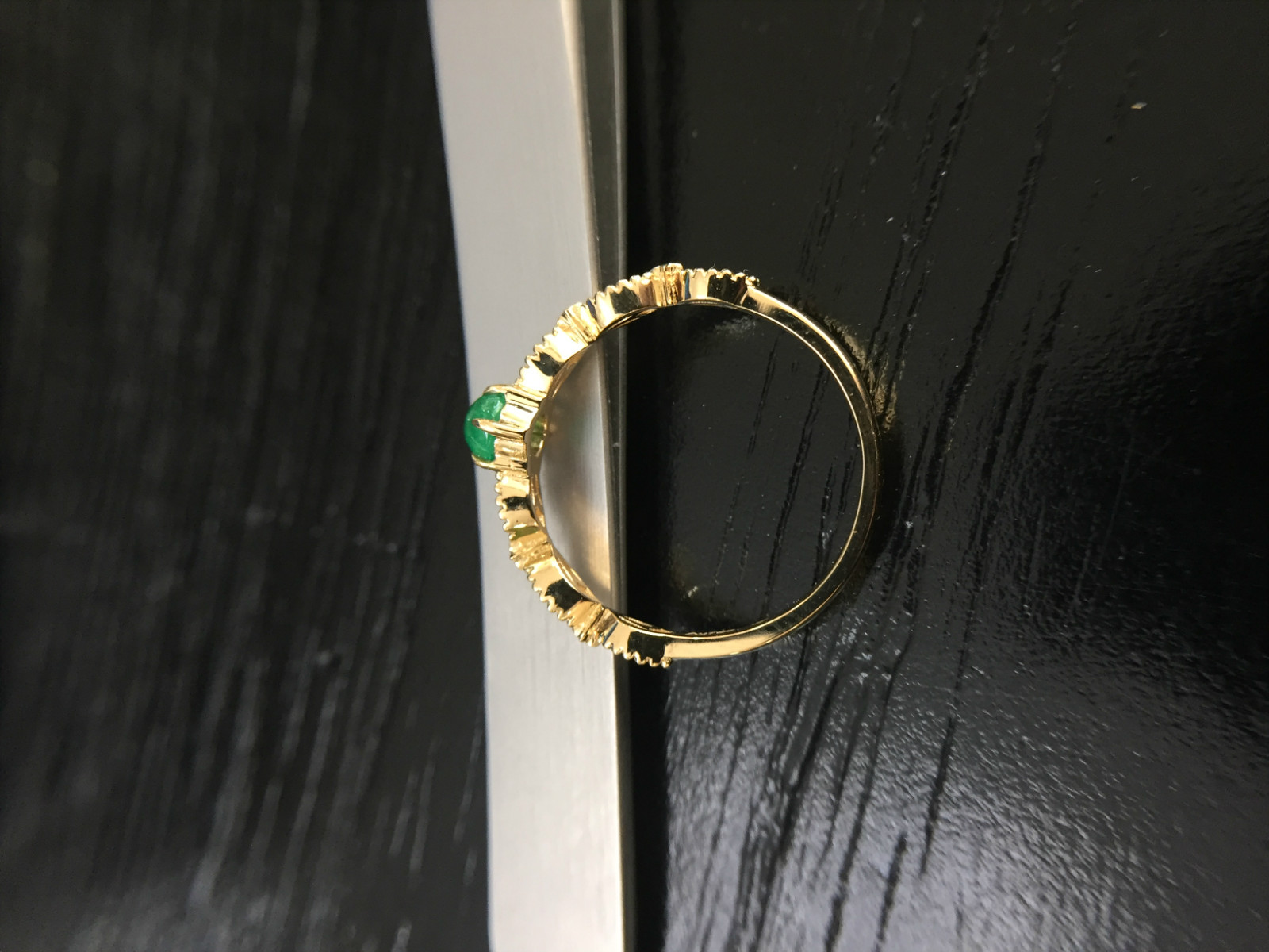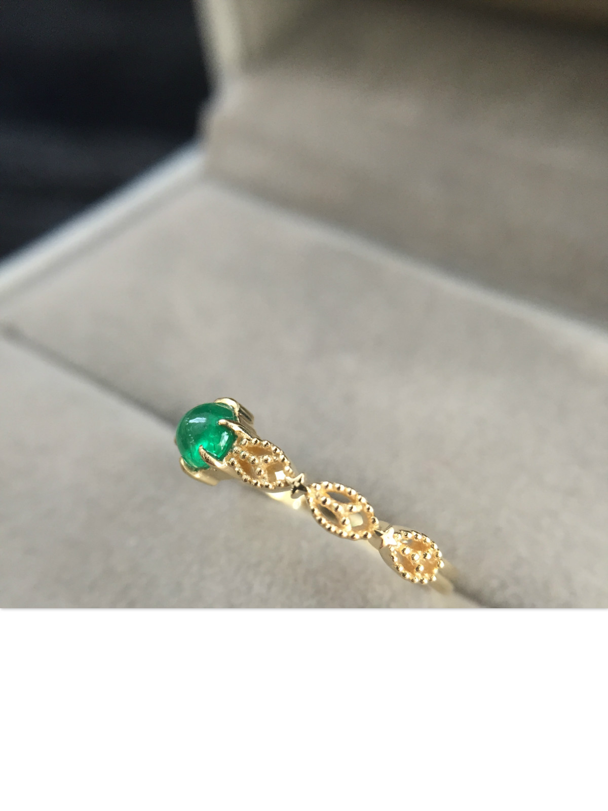祖母绿素面蛋花丝戒指