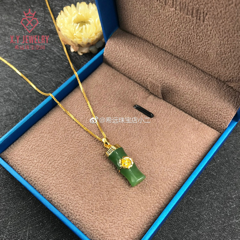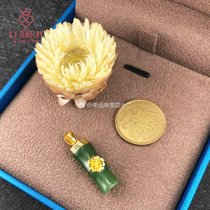 金重约1.2克,足金富贵竹和田碧玉吊坠 精选上等碧玉润泽艳丽,妈妈福泽绵长,福泰安康 花开富贵 福字两款可选 ;新品单坠 不含链