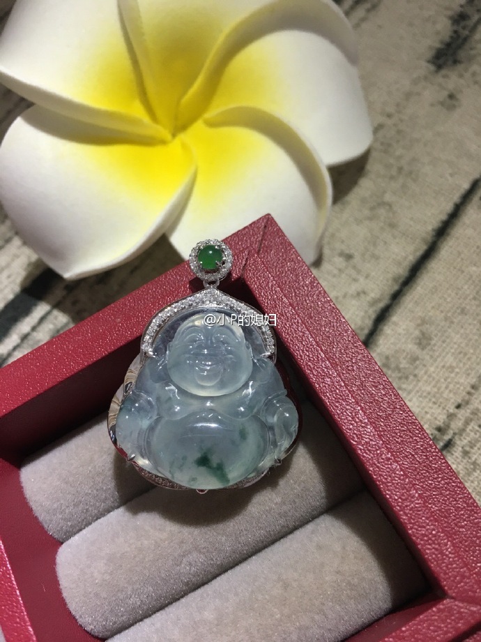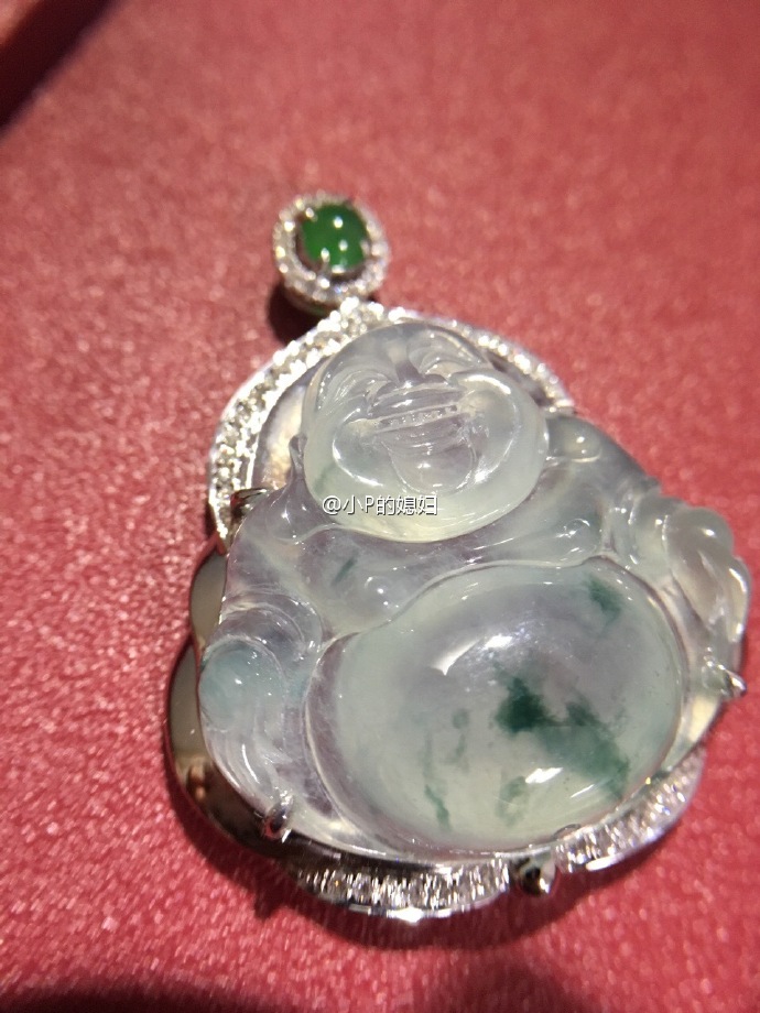 高冰飘花佛公,豪华绿蛋钻石吊坠