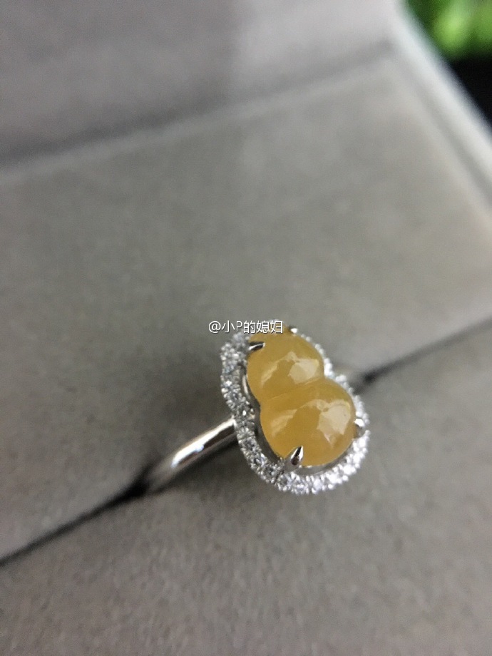 翡翠葫芦3号黄翡葫芦围钻戒指13.5圈