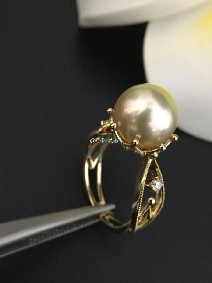 天然南洋金珍珠10.45mm,花丝皇冠款戒指,美貌精致,任何细节都不含糊有没有