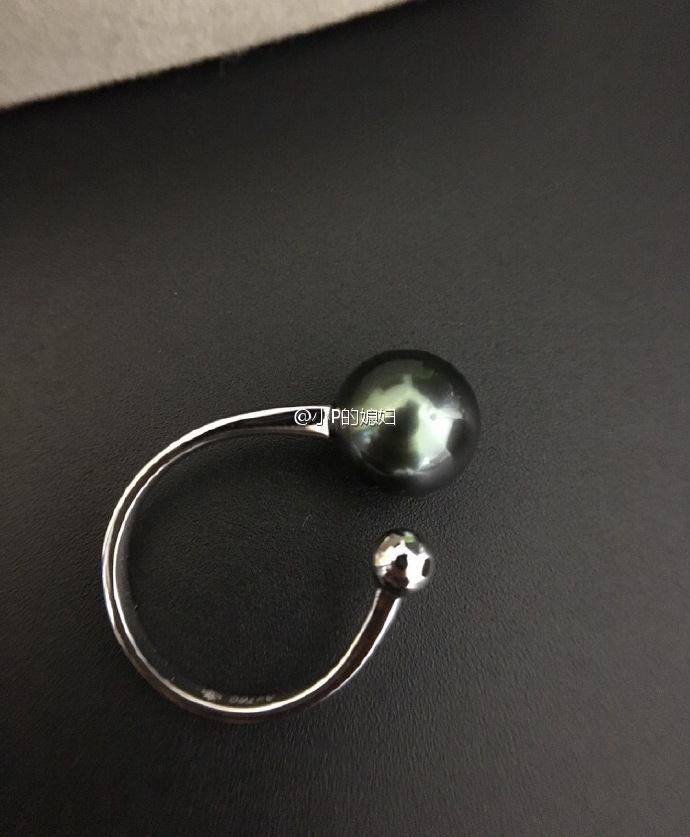 天然大溪地黑珍珠开口戒指,素金珠错开款,戒臂有质感很大气。上手挺漂亮的!