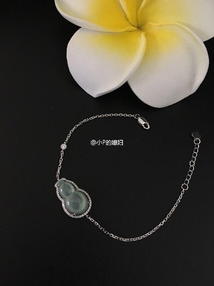 翡翠葫芦8号,围钻手链,链上配一粒3份钻用太阳花包镶法