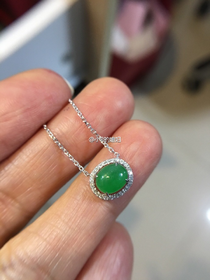 翡翠绿蛋编号1116左边,围钻一体链