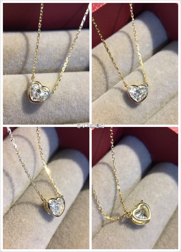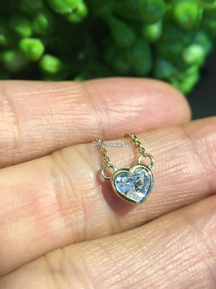 GIA祼钻,心型44和45份,18K黄金包镶一体链,区别在于挂链的小圈的朝向不同