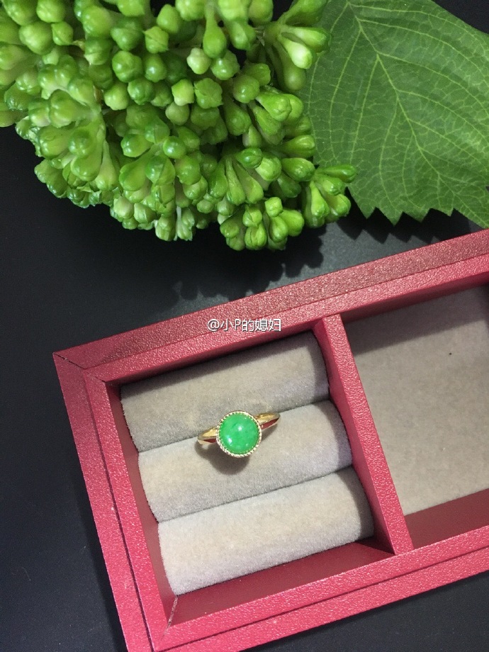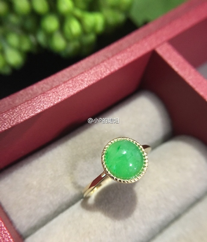 翡翠绿蛋编号111502,露珠钉包镶戒指,14圈