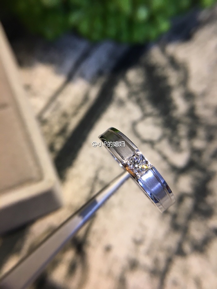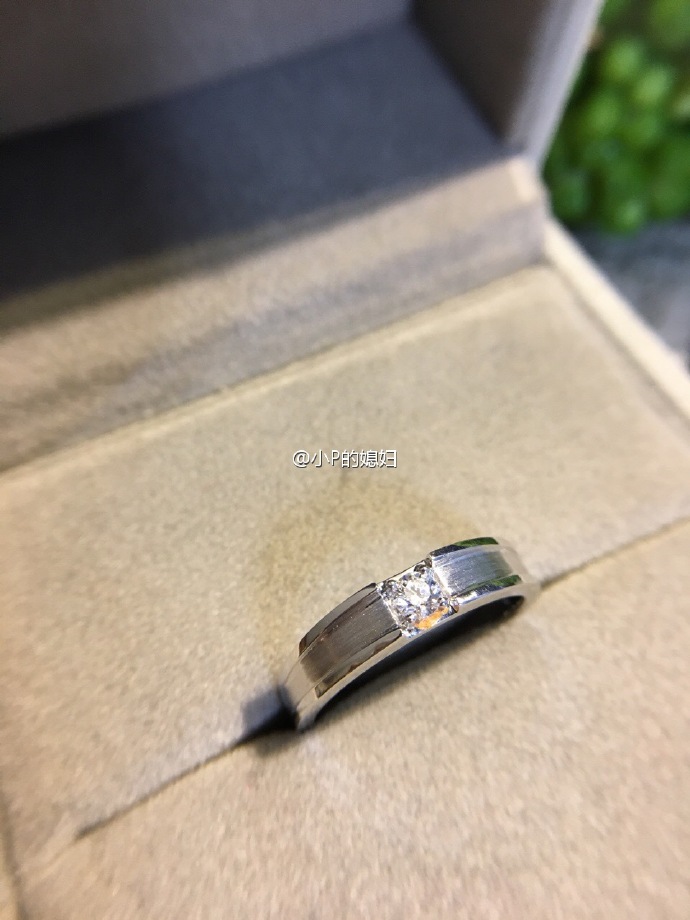 定制款男戒14圈,主钻10份,金重约四克实心打造,内弧戒臂配戴舒适。中间凹的部分采用拉丝工艺,耐磨低调奢华感。面宽4.1MM左右