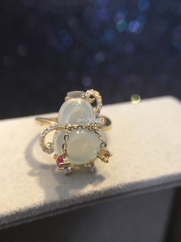 翡翠葫芦钻石彩宝丝带流苏戒指13圈。复杂好玩精致