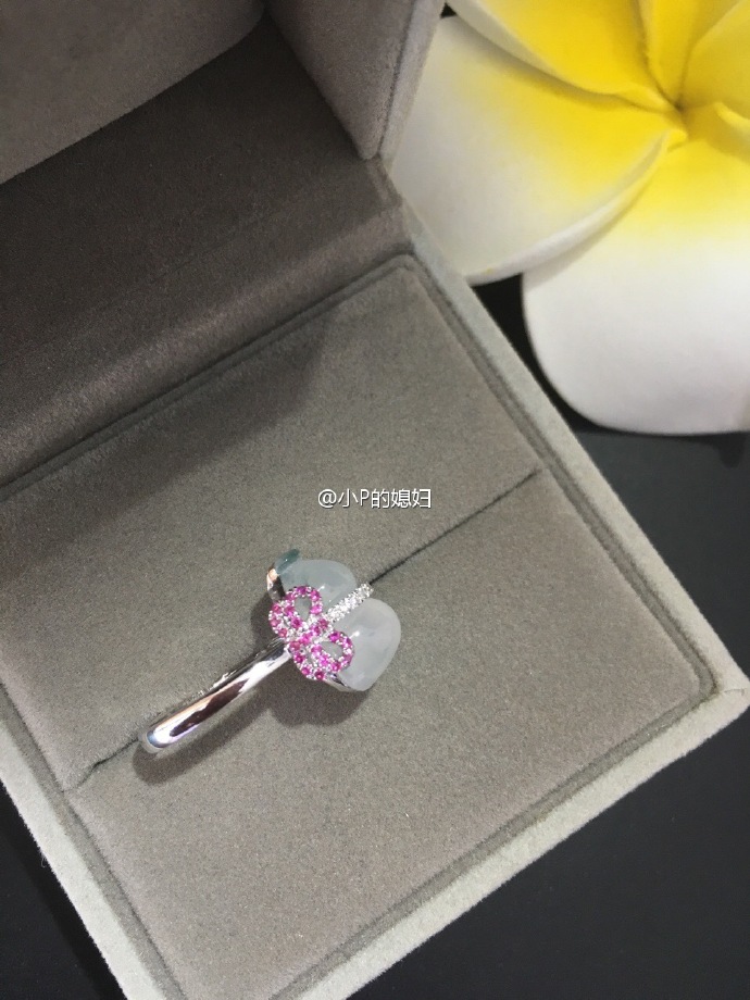 翡翠葫芦,拦腰镶钻石,侧面红宝石蝴蝶结款戒指。销皮艳丽不失珠宝感。好看好看
