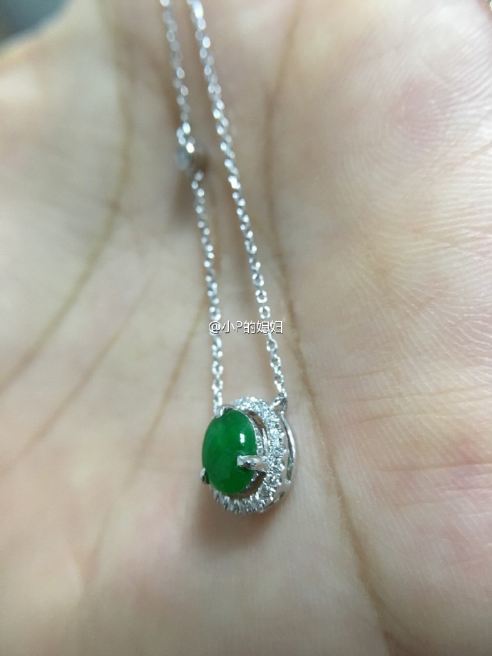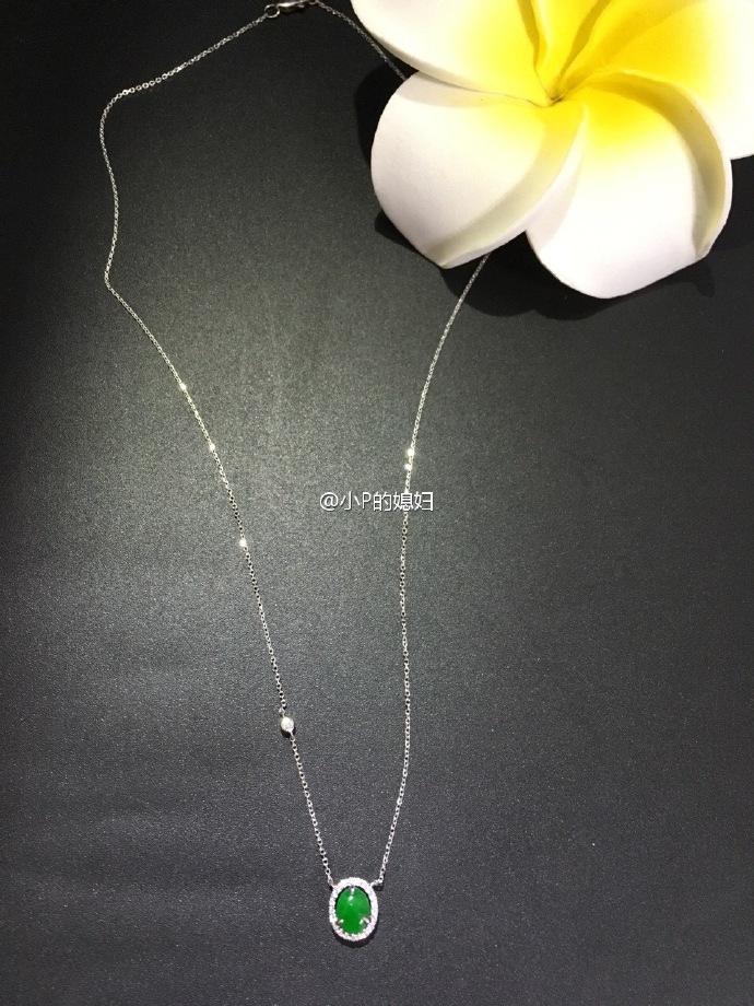 正正正阳绿翡翠绿蛋竖镶款围钻一体链