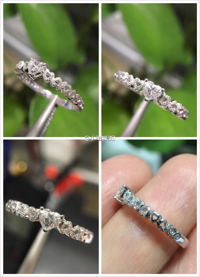 省检证书心型小祼钻镂空心戒指,款式太美,钻石太小,凹造型好难,尽力了。。。秀气款